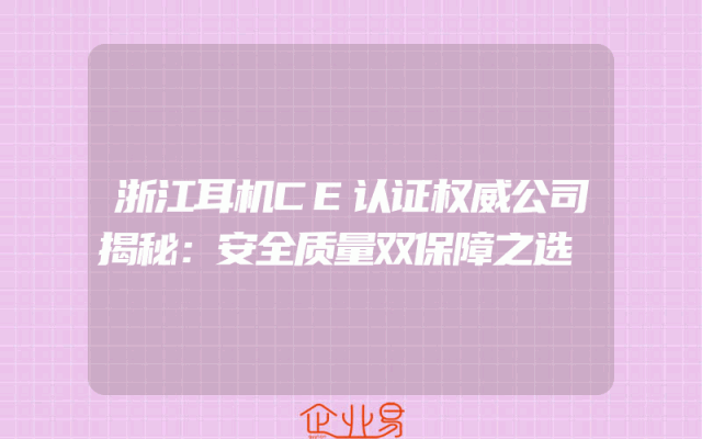 - 浙江耳机CE认证权威公司揭秘:安全质量双保障之选一、引言随着音频设备的普及,耳机市场日益繁荣。在激烈的市场竞争中,如何识别一家既具备认证权威性又能够提供高质量产品的耳机企业,成为消费者关注的焦点。位于浙江的某耳机制造企业,通过CE认证,展现