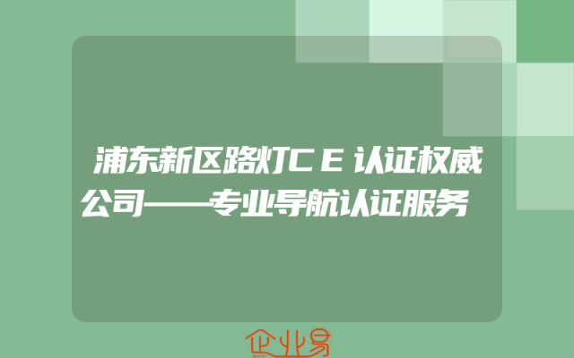 - 浦东新区路灯CE认证权威公司——专业导航认证服务