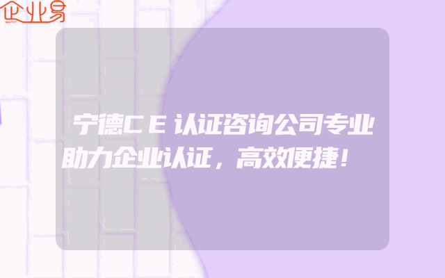 - 宁德CE认证咨询公司专业助力企业认证,高效便捷!