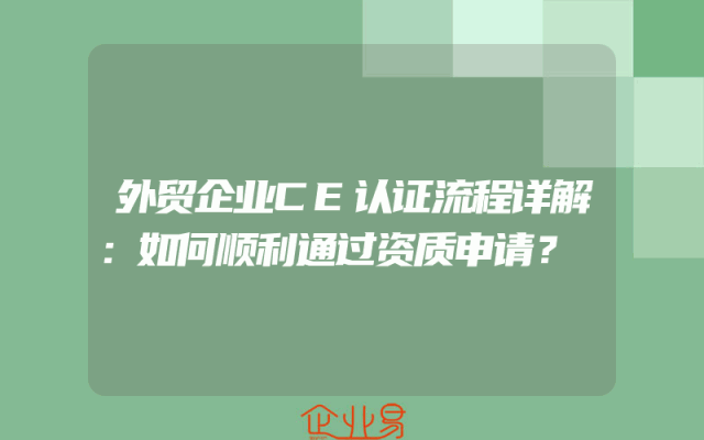 - 外贸企业CE认证流程详解:如何顺利通过资质申请?