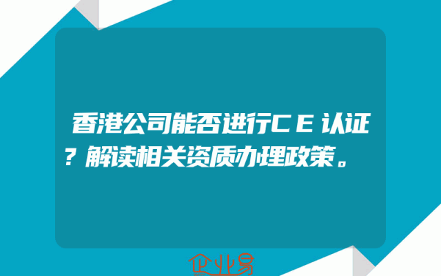 - 香港公司能否进行CE认证?解读相关资质办理政策。
