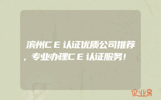 - 滨州CE认证优质公司推荐,专业办理CE认证服务!