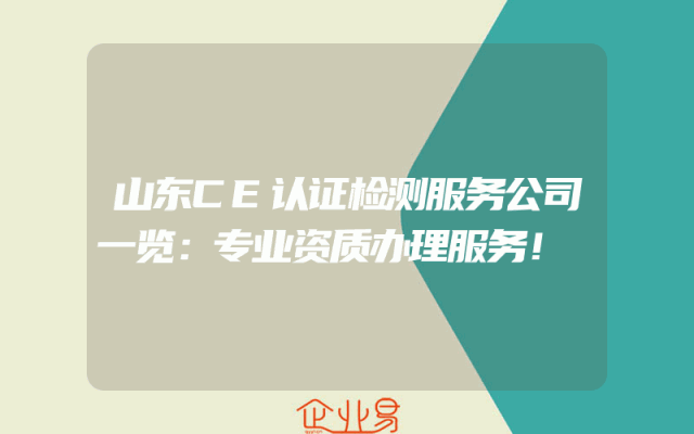 - 山东CE认证检测服务公司一览:专业资质办理服务!