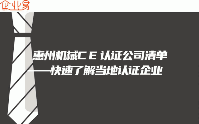 - 惠州机械CE认证公司清单——快速了解当地认证企业