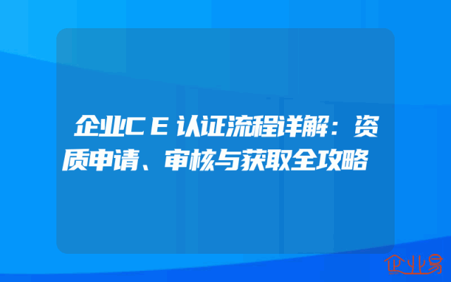 - 企业CE认证流程详解:资质申请、审核与获取全攻略