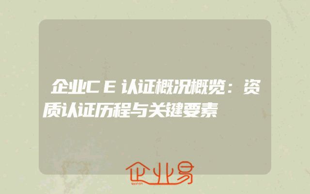 - 企业CE认证概况概览:资质认证历程与关键要素
