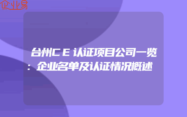 - 台州CE认证项目公司一览:企业名单及认证情况概述