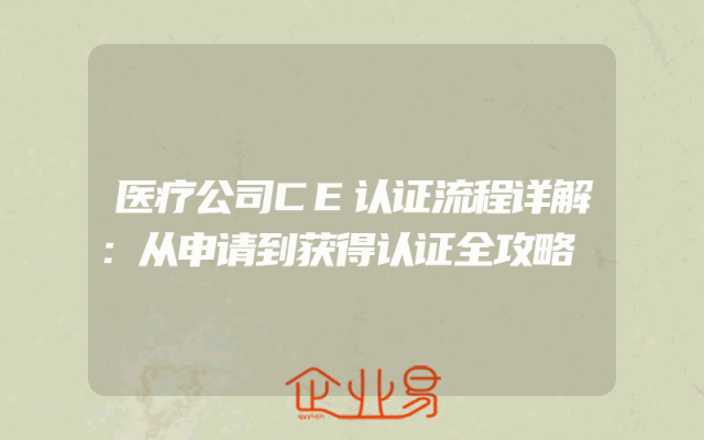 - 医疗公司CE认证流程详解:从申请到获得认证全攻略