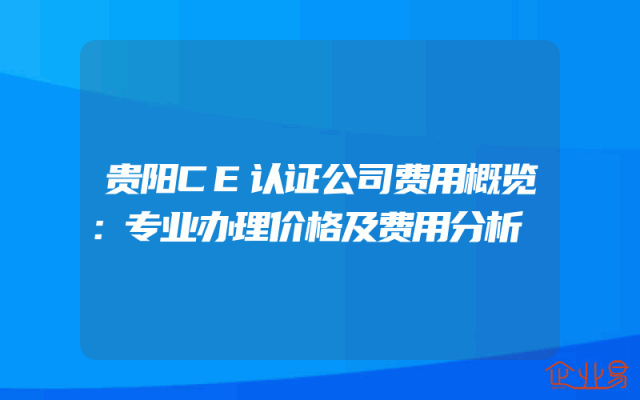 - 贵阳CE认证公司费用概览:专业办理价格及费用分析