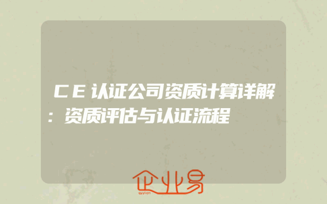 - CE认证公司资质计算详解:资质评估与认证流程