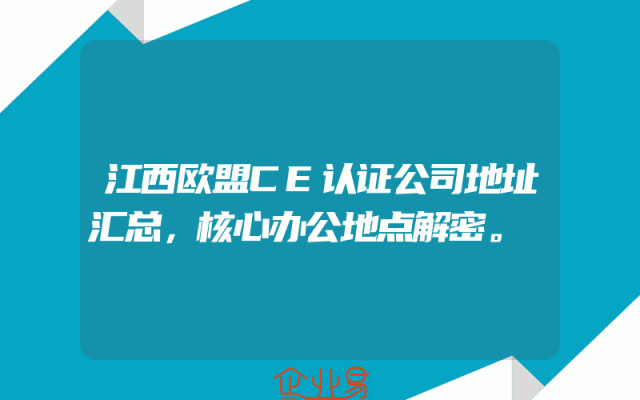 - 江西欧盟CE认证公司地址汇总,核心办公地点解密。