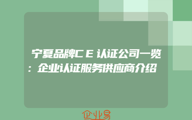 - 宁夏品牌CE认证公司一览:企业认证服务供应商介绍