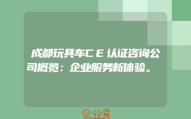- 成都玩具车CE认证咨询公司概览:企业服务新体验。