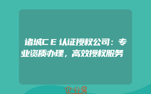 - 诸城CE认证授权公司:专业资质办理,高效授权服务