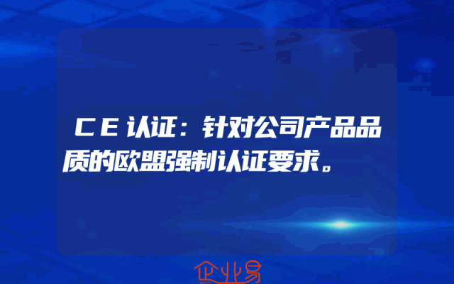 - CE认证:针对公司产品品质的欧盟强制认证要求。