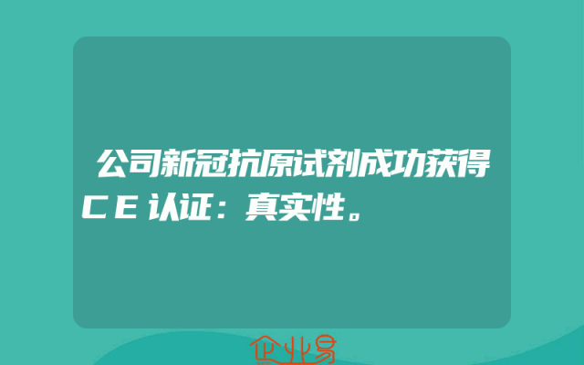 - 公司新冠抗原试剂成功获得CE认证:真实性。