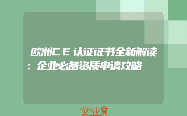- 欧洲CE认证证书全新解读:企业必备资质申请攻略
