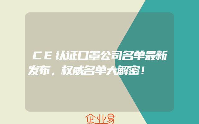 - CE认证口罩公司名单最新发布,权威名单大解密!