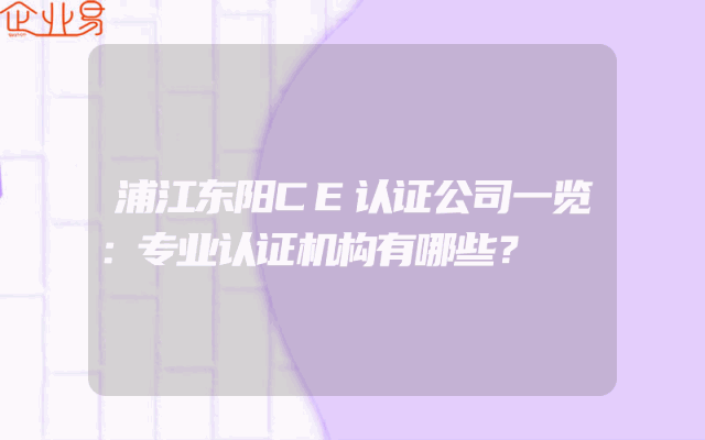 - 浦江东阳CE认证公司一览:专业认证机构有哪些?