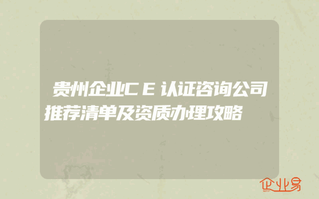 - 贵州企业CE认证咨询公司推荐清单及资质办理攻略