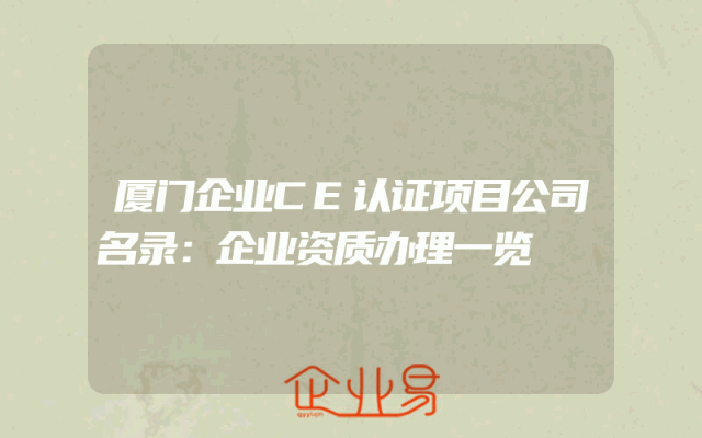 - 厦门企业CE认证项目公司名录:企业资质办理一览