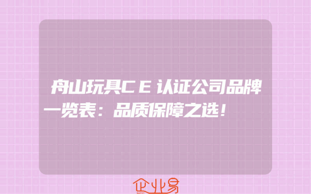 - 舟山玩具CE认证公司品牌一览表:品质保障之选!