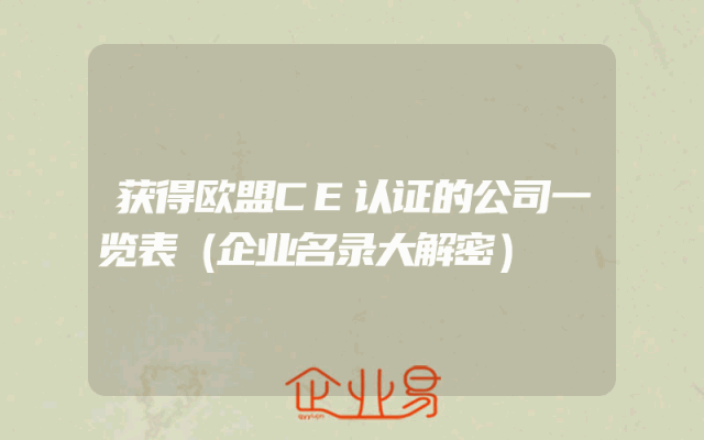 - 获得欧盟CE认证的公司一览表(企业名录大解密)