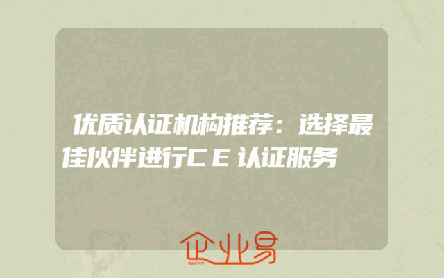 - 优质认证机构推荐:选择最佳伙伴进行CE认证服务