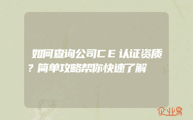 - 如何查询公司CE认证资质?简单攻略帮你快速了解