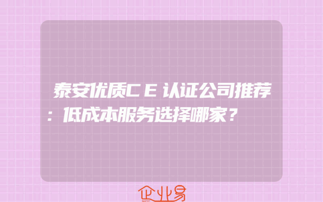 - 泰安优质CE认证公司推荐:低成本服务选择哪家?