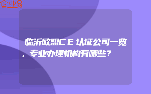 - 临沂欧盟CE认证公司一览,专业办理机构有哪些?
