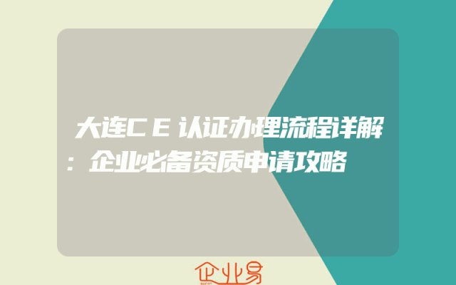 - 大连CE认证办理流程详解:企业必备资质申请攻略