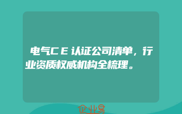 - 电气CE认证公司清单,行业资质权威机构全梳理。