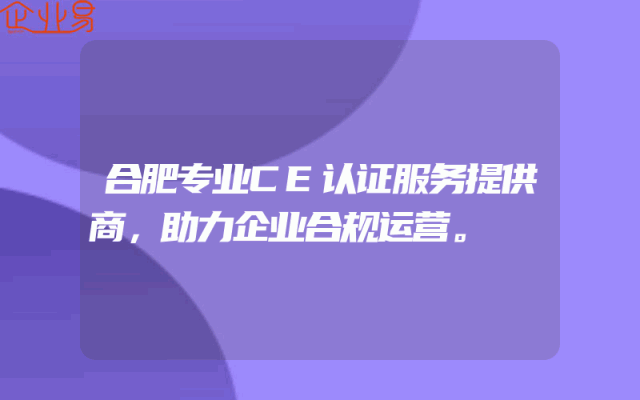 - 合肥专业CE认证服务提供商:助力企业合规运营一、引言在全球化背景下,企业面临着越来越多的市场机遇与挑战。为了确保产品的安全与合规性,满足欧盟市场的准入要求,许多企业开始寻求专业的CE认证服务。在合肥,有一批专业的CE认证服务提供商,他们致力