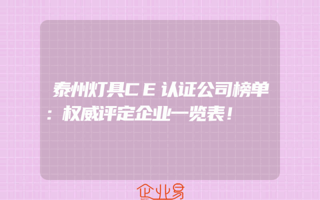 - 泰州灯具CE认证公司榜单:权威评定企业一览表!