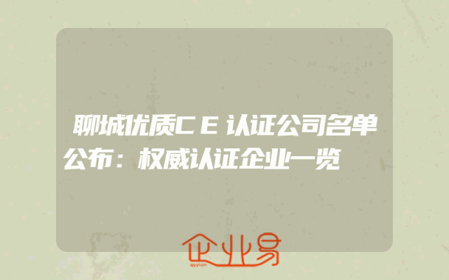 - 聊城优质CE认证公司名单公布:权威认证企业一览