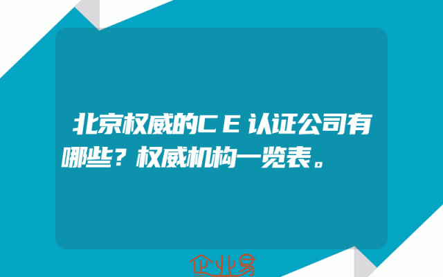 - 北京权威的CE认证公司有哪些?权威机构一览表。