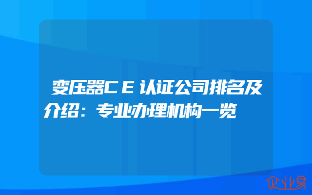 - 变压器CE认证公司排名及介绍:专业办理机构一览