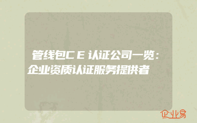 - 管线包CE认证公司一览:企业资质认证服务提供者