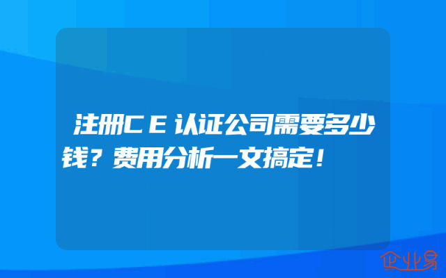 - 注册CE认证公司需要多少钱?费用分析一文搞定!