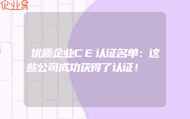 - 优质企业CE认证名单:这些公司成功获得了认证!