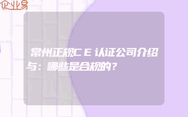 - 常州正规CE认证公司介绍与:哪些是合规的?