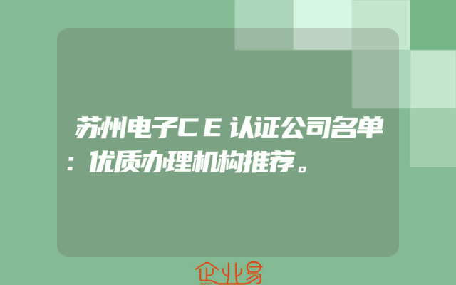 - 苏州电子CE认证公司名单:优质办理机构推荐。