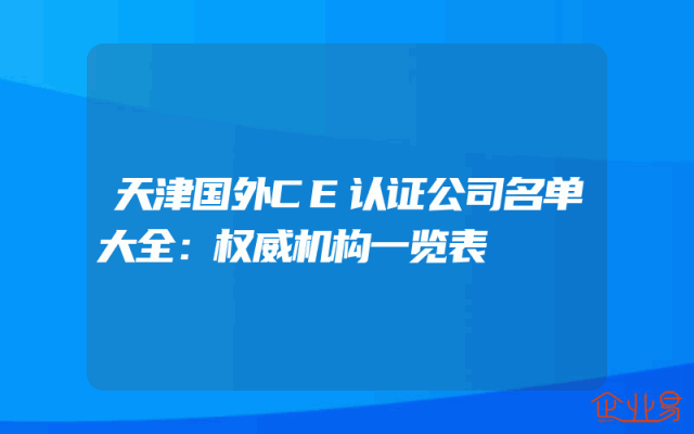 - 天津国外CE认证公司名单大全:权威机构一览表