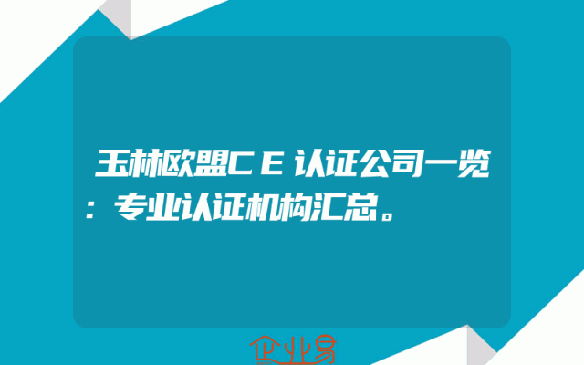 - 玉林欧盟CE认证公司一览:专业认证机构汇总。