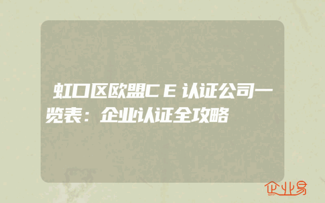 - 虹口区欧盟CE认证公司一览表:企业认证全攻略