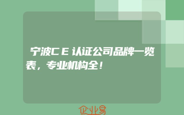 - 宁波CE认证公司品牌一览表,专业机构全!