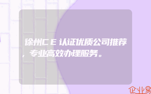 - 徐州CE认证优质公司推荐,专业高效办理服务。