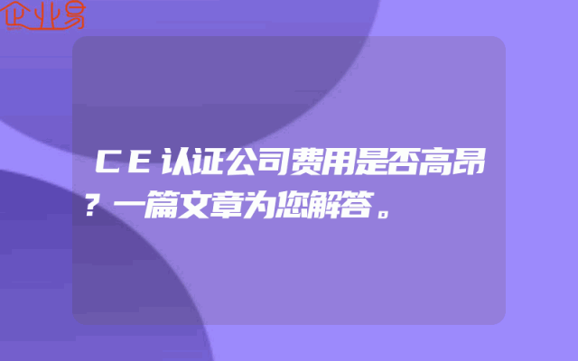 - CE认证公司费用是否高昂?一篇文章为您解答。