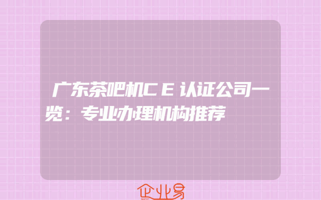 - 广东茶吧机CE认证公司一览:专业办理机构推荐
